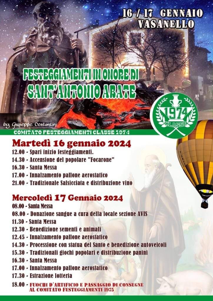 VASANELLO – Tutto pronto, a Vasanello. per le tradizionali celebrazioni in onore di sant’Antonio Abate, patrono degli animali.