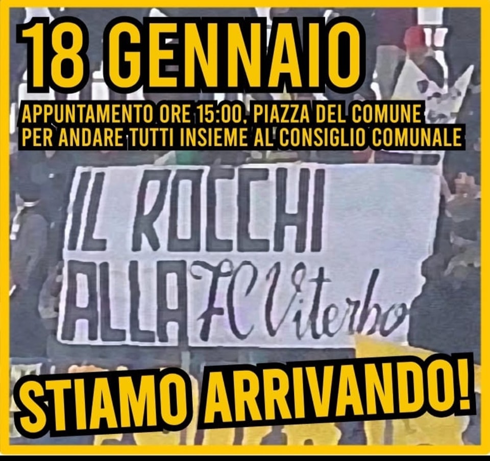 VITERBO – Alle 15.30 di oggi avrà inizio il consiglio comunale aperto sullo Stadio Rocchi. Non servirà praticamente a nulla se non a placare le ire dei tifosi della Viterbese e di tanti cittadini delusi da questa maggioranza completamente scollata dalla realtà sportiva cittadina.