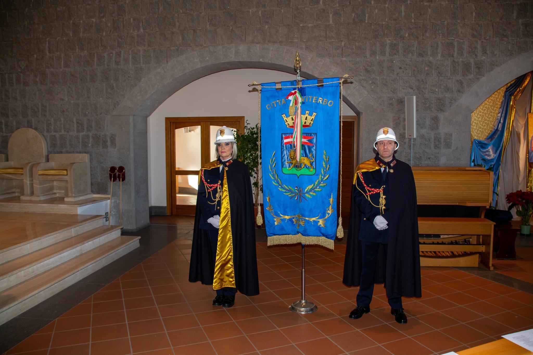 In chiesa tutti gli agenti del comando di Viterbo, ma anche quelli dei comandi di alcuni Comuni del viterbese. In prima fila, il prefetto di Viterbo Gennaro Capo, il presidente della Provincia Alessandro Romoli, il questore Fausto Vinci e il generale comandante Aves Andrea Di Stasio. Presenti anche l’assessore ai servizi per il cittadino del Comune di Viterbo Katia Scardozzi, e i consiglieri Di Fusco e Martinengo.