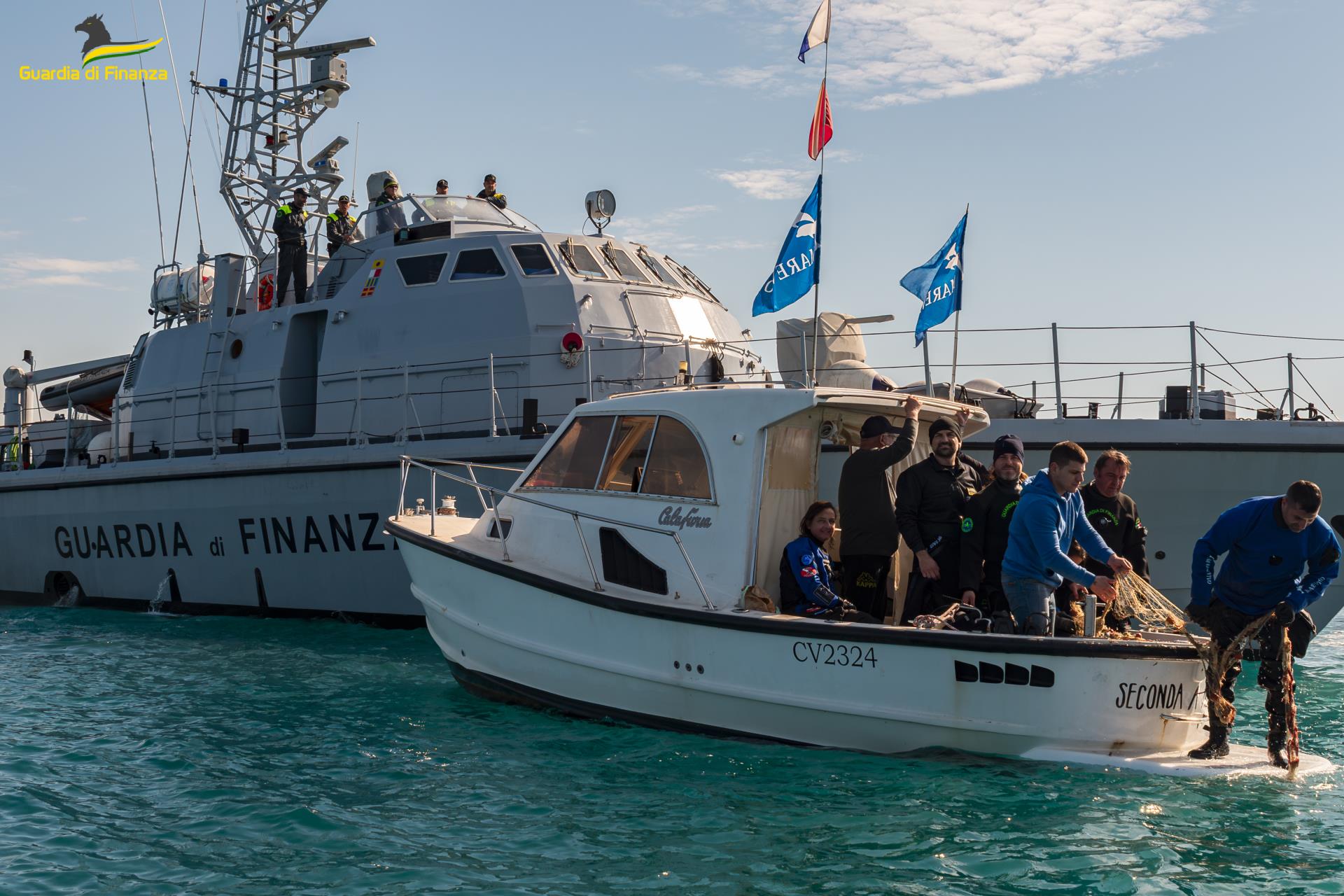 Civitavecchia – Fiamme gialle recuperano rete fantasma dai fondali del mare (FOTO)