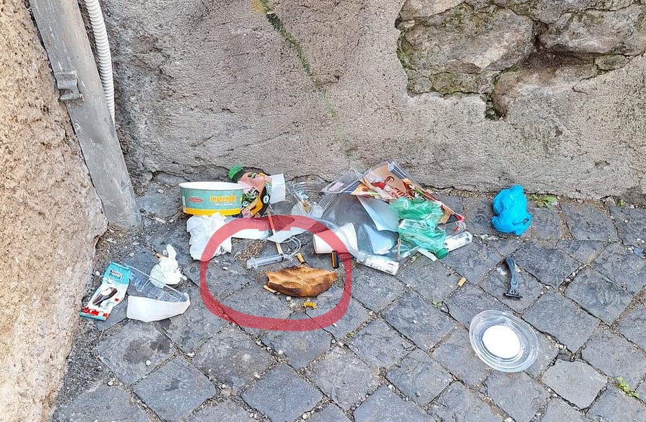 Siringhe a terra in via Macel Gattesco, in pieno centro