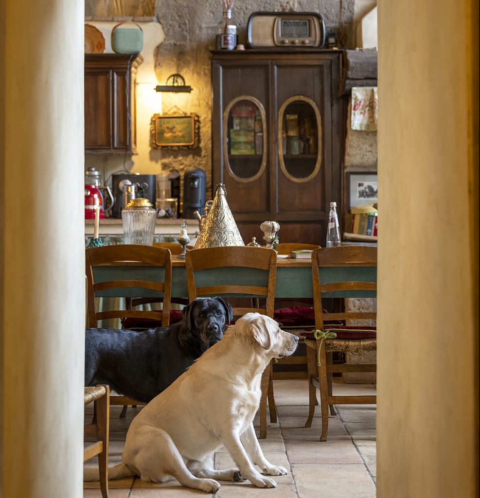 Ad accompagnare colazioni, chiacchiere e letture in giardino ci sono loro: Ortensia, la bionda, e Olivia, la mora. Splendide sorelle Labrador, parte dello staff “il loro compito è quello di donare felicità“.