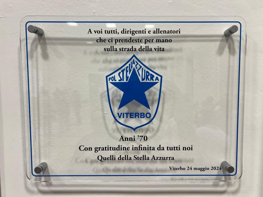 Oltre ottanta gli ex “pischelli” che, in quegli anni, indossarono la casacca della Polisportiva Stella Azzurra e che venerdì 24 maggio si sono ritrovati per ringraziare chi li ha accompagnati in quel percorso e celebrare quegli anni «“beat”, irripetibili e indimenticabili». “A voi tutti, dirigenti e allenatori che ci prendeste per mano sulla strada della vita. Con gratitudine infinita da tutti noi”.Si legge nella targa che la “squadra” di vecchi amici tra i quali: Vincenzo Cima, Francesco Muti, Roberto Fortini, Paolo Nevi, Antonello Ricci, Pino Morelli, Massimo Zucchi, Enrico Aquilani, Carlo Milioni e Giuliano Proietti, ha donato ai diretti interessati, su tutti Don Elio, parroco della Chiesa della Veritò che ha spalancato le porte del “suo” oratorio a intere generazioni.