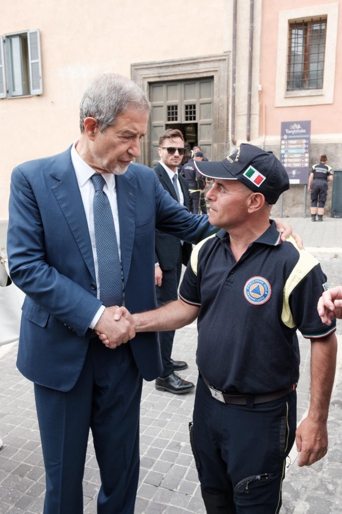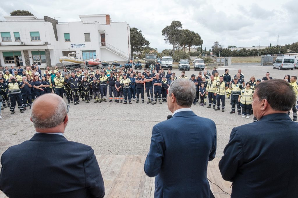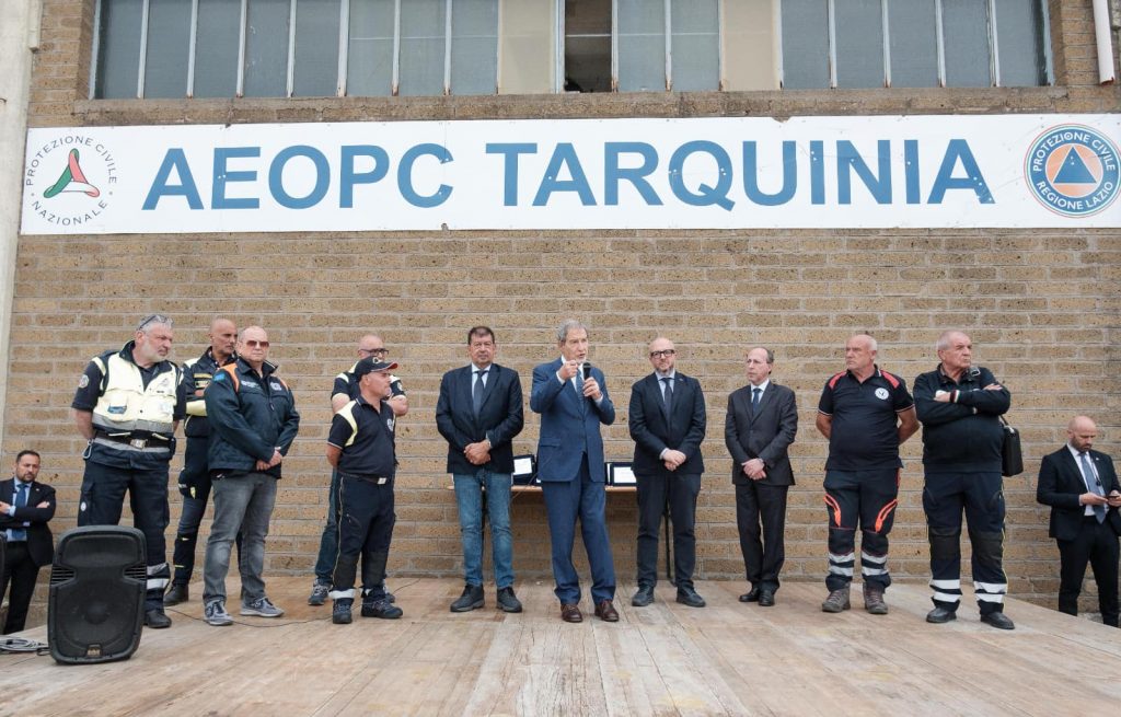 Subito dopo l’incontro il Ministro, accompagnato dal sindaco di Tarquinia Alessandro Giulivi, si è recato alla base regionale dell’Aeopc messa a disposizione dal Comune e diventata punto di raccolta ed esercitazione dei volontari provenienti da tutta la regione.