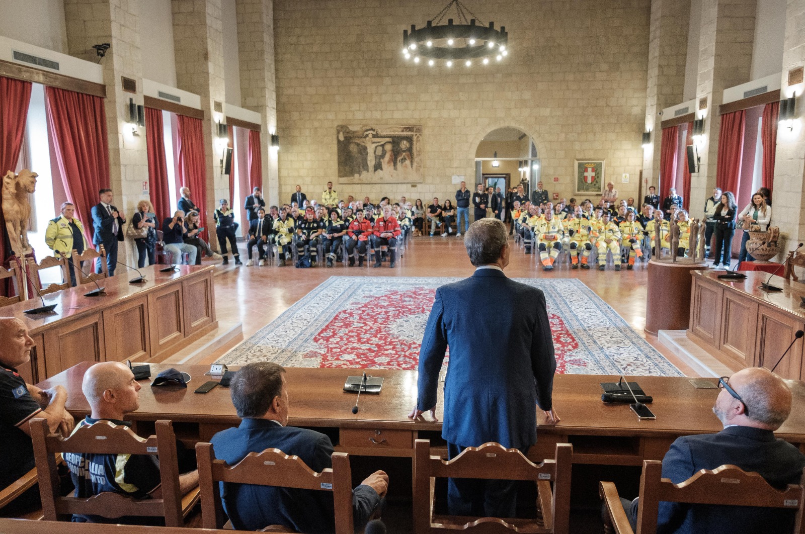 “Ringrazio il ministro e amico della nostra Città Nello Musumeci – ha dichiarato il sindaco Giulivi”, che da subito ha accettato di venire a questo incontro con le associazioni di volontariato della Protezione Civile. Ringrazio l’onorevole Mauro Rotelli per il suo quotidiano impegno sul nostro territorio ma ringrazio soprattutto voi, uomini e donne della Protezione Civile per tutto quello che fate per la nostra comunità”.