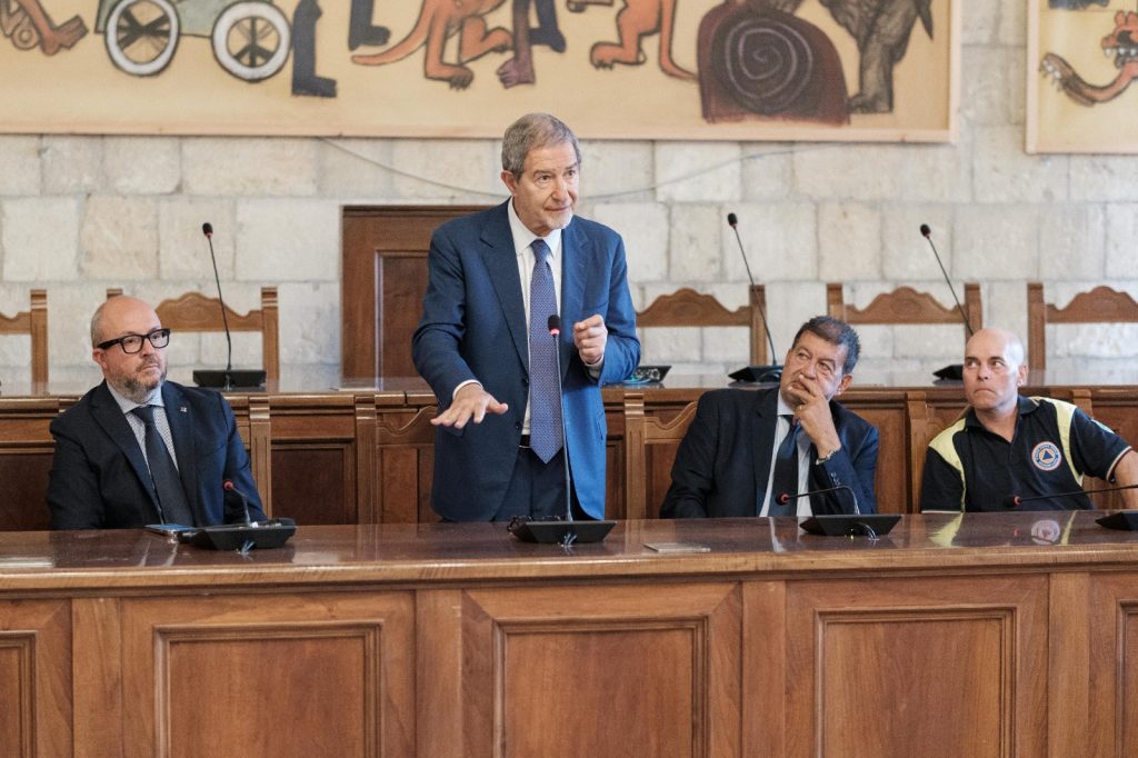 Così, puntuale come al solito, alle 16 il Ministro Nello Musumeci si è presentato nella sala consigliare del Comune dove ad attenderlo c’era il sindaco Alessandro Giulivi, il responsabile della Protezione Civile cittadina Alessandro Sacripanti, il presidente della Commissione Ambiente della Camera dei Deputati Mauro Rotelli, il Prefetto di Viterbo Gennaro Capo e tutti gli ufficiali comandanti delle forze dell’ordine provinciali.