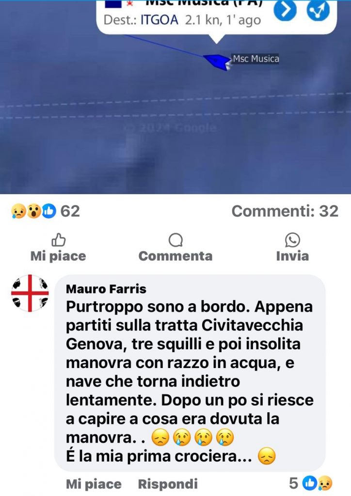 Proprio ieri sera sui social si era diffusa la voce di un uomo caduto in mare che si trovava a bordo della MSC Musica partita dal porto di Civitavecchia.