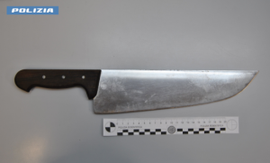 reca davanti alla vetrina di un’agenzia immobiliare lì vicino e a quel punto scaglia una bottiglia di vetro piena di olio di oliva contro la vetrina dell’esercizio commerciale. La vetrina si rompe e una dipendente dell’agenzia (che in quel momento stava seguendo dei clienti) si prende un bello spavento, il che porta la donna a rivolgersi subito alla Polizia. Arrivati sul posto, gli agenti vengono a sapere dell’accaduto: la donna indica loro la palazzina dove abita l’uomo che ha lanciato la bottiglia, spiegando che questa non è la prima volta che viene importunata da quel signore. A questo punto, i poliziotti raggiungono l’appartamento e identificano l’uomo, un 54enne italiano, il quale, non appena scorge le divise delle forze dell’ordine, inizia a minacciare verbalmente gli agenti, dopodiché scende in strada e prende a calci l’auto di servizio. Poi risale in casa si barrica all’interno, brandendo dal balcone un grosso coltello della lunghezza di circa 50 centimetri e minacciando di morte gli agenti qualora fossero entrati. Gli agenti decidono di chiedere rinforzi e sul posto arrivano a stretto giro altri poliziotti in ausilio, tra cui personale in borghese e specialisti Taser. Alla fine, dopo circa due ore di inutili trattative, alcuni degli agenti fanno irruzione nell’appartamento, accedendo dalla porta-finestra della cucina. A quel punto comincia una nuova trattativa che, in questo caso, si risolve nel giro di pochi minuti, con il 54enne che si arrende e consegna il coltello agli agenti. L’uomo viene arrestato con le accuse di resistenza a Pubblico Ufficiale e danneggiamento aggravato ai beni dello Stato. L’Autorità Giudiziaria, su richiesta della Procura della Repubblica di Velletri, ha poi convalidato l’arresto e lo ha sottoposto all’obbligo di presentazione alla Polizia Giudiziaria.