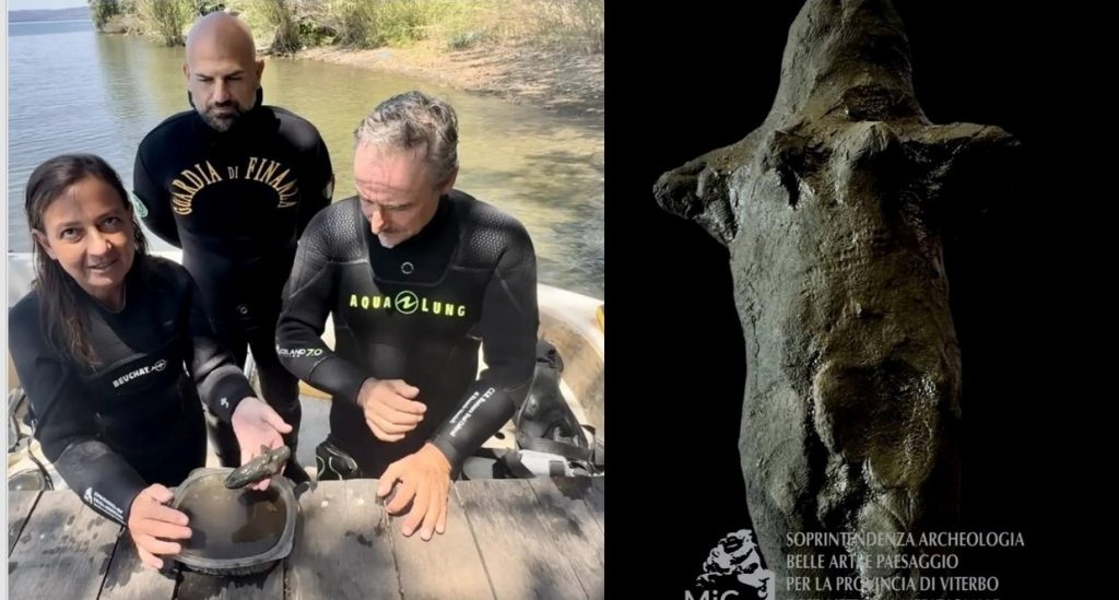 BOLSENA – Una statuetta votiva modellata nell’argilla e risalente a circa 3mila anni fa è stata trovata nel lago di Bolsena – in provincia di Viterbo, nel Lazio – , in queste ore. Si tratta di un oggetto di culto, probabilmente domestico, che reca ancora i segni e le impronte delle mani di chi lo modellò. Grazie a questi segni si potrà forse stabilire la grandezza dell’arto di chi ha prodotto la statuetta.L’idoletto è stato riportato alla luce durante i lavori che si stanno svolgendo nell’ambito del PNRR nel sito protostorico sommerso del Gran Carro, finalizzati alla creazione di un percorso subacqueo. La figurina fittile femminile è stata trovata nell’area dell’antico abitato, oggi sommerso dalle acque del lago, ma un tempo sorgente dalla riva. Ne dà notizia La Soprintendenza Archeologia Belle Arti Paesaggio Etruria Meridionale.