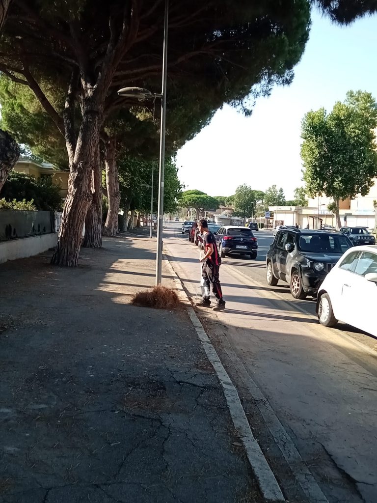 Anche la pulizia delle strade, in alcune vie del lido, è praticamente impossibile usando le spazzatrici perché il manto stradale è divelto dalle radici dei pini.