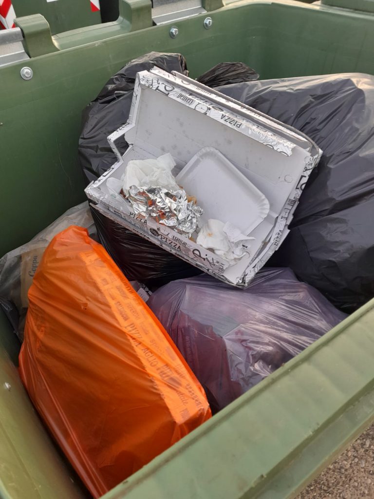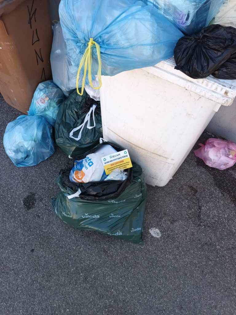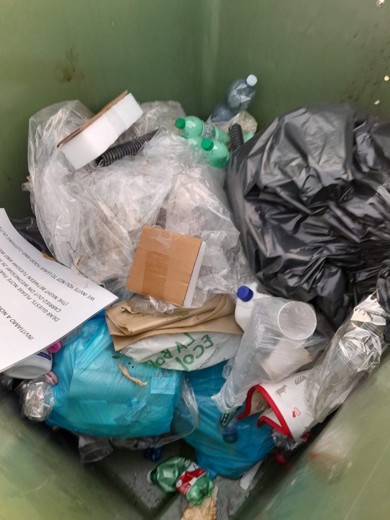 Nelle foto che seguono è evidente come i rifiuti vengano conferiti in modo confuso e sbagliato. Non possiamo immaginare che siano tutti ignoranti ma semplicemente furbi e menefreghisti. Alla faccia della svolta verde.
