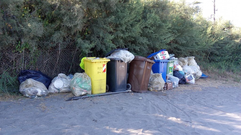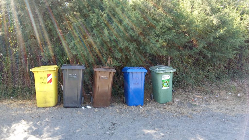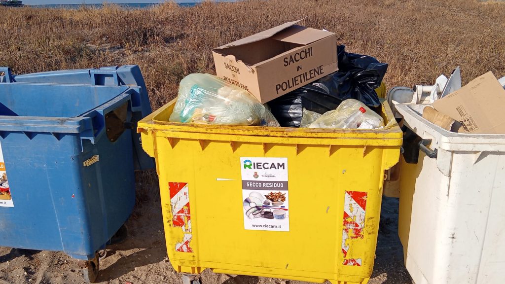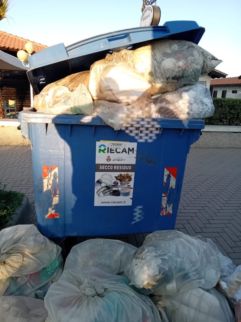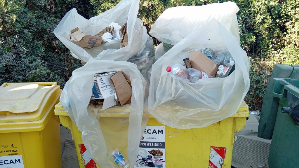 I campeggi non differenziano. Buttano tutti i rifiuti mischiati insieme. Vetro, plastica, metalli, umido, tutto in barba ad ogni regola e calendario. Ficcano tutto dentro i secchioni finché c’è spazio poi li lasciano fuori.
