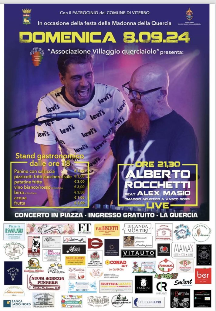 VITERBO – Grandi festeggiamenti domenica 8 settembre in occasione della festa della Madonna della Quercia, un appuntamento con musica dal vivo e tante prelibatezze da mangiare organizzato dall’associazione Villaggio Querciaiolo con il patrocino del Comune di Viterbo.