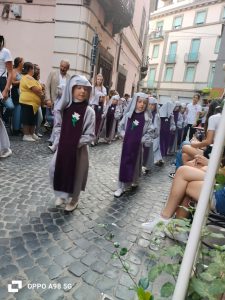 VITERBO – Per le vie del centro hanno sfilano nella giornata di ieri rosine, boccioli, frati francescani, paggi, podestà e armigeri. Era il giorno del corteo storico di Santa Rosa, l’evento che riporta in vita annualmente la storia della città di Viterbo attraverso secoli grazie a oltre 300 figurati e ai facchini e ai minifacchini di Santa Rosa.