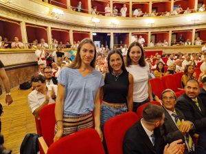 Presenti alla cerimonia anche tre delle quattro atlete – la capitana Mara Navarria, Alberta Santuccio e Giulia Rizzi – medaglia d’oro olimpica nella spada femminile, madrine del Trasporto 2024 insieme a miss Mondo Italia Lucrezia Mangilli. Insieme hanno consegnato doni alle autorità.