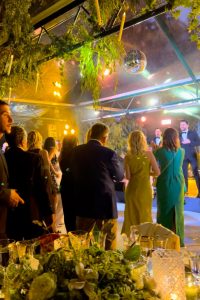 L’evento, curato in ogni dettaglio, ha visto i tavoli disposti intorno a quello centrale riservato al festeggiato e alla sua famiglia, con ognuno dei tavoli decorati con il nome di un diverso monumento, simbolo del legame tra la città e la carriera di Angelucci. La cena, che ha previsto piatti raffinati come risotto e spigola, è stata accompagnata dalle note di quattro violiniste, in uno stile elegante e misurato, tipico del padrone di casa.