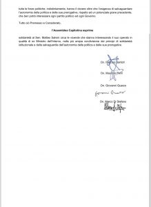 Indipendentemente dagli orientamenti politici di ciascuno, “non può lasciare indifferente la fattispecie di un membro del governo che, in piena sintonia con l’esecutivo del tempo, nonchè con il programma elettorale presentato ai cittadini, viene portato a processo. Uno squilibrio pericolosissimo nella garanzia di bilanciamento tra i poteri dello Stato. Con la nostra mozione, intendiamo rimarcare la necessitá di ogni governo, di qualsiasi colore politico, di poter agire in continuitá con le azioni sulle quali viene richiesta fiducia elettorale ai cittadini. L’allora Ministro Salvini ha agito per la tutela di un interesse dello Stato costituzionalmente rilevante ovvero per il perseguimento di un preminente interesse pubblico. Nel caso da cui muovono invece queste riflessioni, è pacifico che Salvini non abbia agito per tornaconto personale o per perseguire un interesse privato” dicono i due consiglieri della Lega.