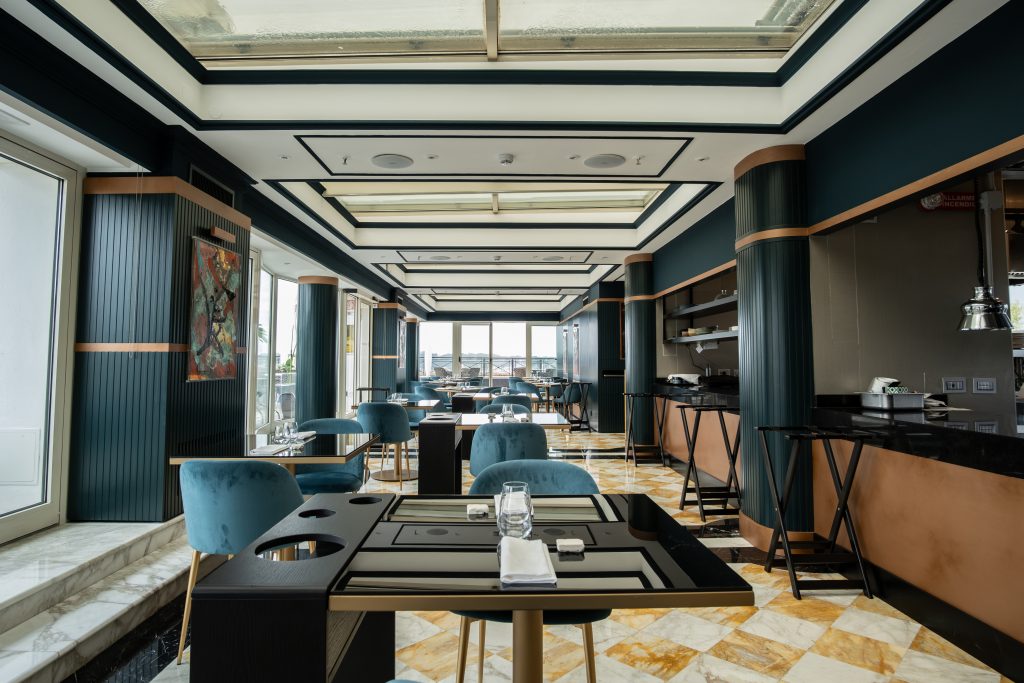 Un attento restyling dal tocco glamour e contemporaneo, curato dall’architetto Valerio Alecci ha donato alla sala interna del Vizio una nuova atmosfera moderna, con arredi contemporanei, sottili accostamenti cromatici e materiali ricercati di richiamo nipponico. Una cifra stilistica decisamente nuova, frutto del prolungamento del processo di restyling avviato dal prestigioso Hotel Sina Bernini Bristol, punto di riferimento della Luxury Hospitality nella Capitale e che ospita nel suo panoramico Rooftop, uno dei concept food più moderni della Città. Il risultato è un ambiente sofisticato ma decisamente accogliente, in linea con la filosofia del ristorante. Quadri e colori che omaggiano l’ispirazione alla cultura nipponica, opere d’autore che creano armonia tra la bellezza del panorama e gli spazi interni.