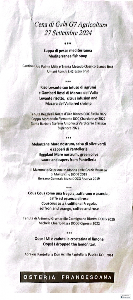 Una cornice da sogno ha fatto da scrigno alle sue meravigliose portate per la cena all’interno del Parco archeologico, qui, i potenti di Canada, Francia, Germania, Giappone, Italia, Regno Unito, Stati Uniti, ospite per la prima volta anche una delegazione dell’Africa, alla luce della luna, si sono si incantati di fronte alle suggestive grotte e alla rigogliosa vegetazione di alberi secolari. Tra gli ospiti, in una delle sue prime uscite ufficiali, il ministro Alessandro Giuli, accanto a Lollobrigida. Tutti, dopo aver assistito all’interpretazione dell’etoile Eleonora Abbagnato rappresentata all’anfiteatro, si sono ritrovati a tavola.
