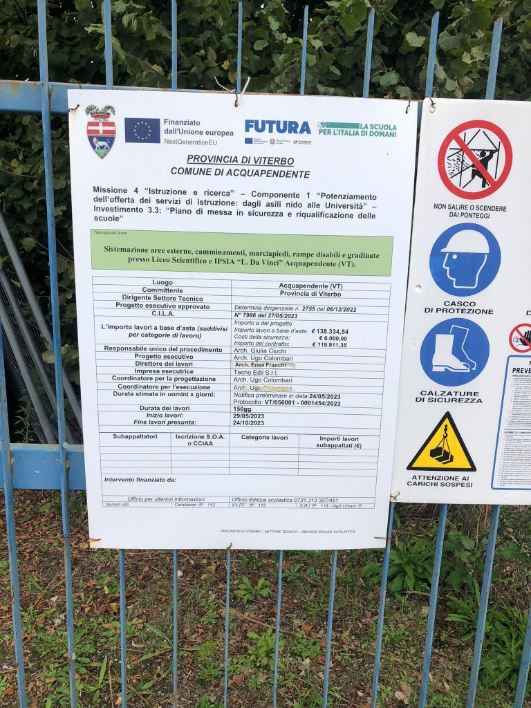 ACQUAPENDENTE – Fondi Pnrr, 550 mila euro destinati alla nuova palestra. “Era marzo del 2023 quando Il Consiglio Comunale di Acquapendente approva all’unanimità la realizzazione di una nuova palestra a servizio del Liceo Scientifico e dell’Ipsia Leonardo Da Vinci autorizzando contemporaneamente alla costruzione in deroga alle NTA del PRG vigente con i fondi del Pnrr voluta dalla Provincia di Viterbo“.