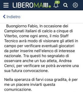 L’attenzione della Fisdir Federazione per un eventuale chiamata in NAZIONALE del giocatore Andrea Cenci ci riempe di grande gioia.