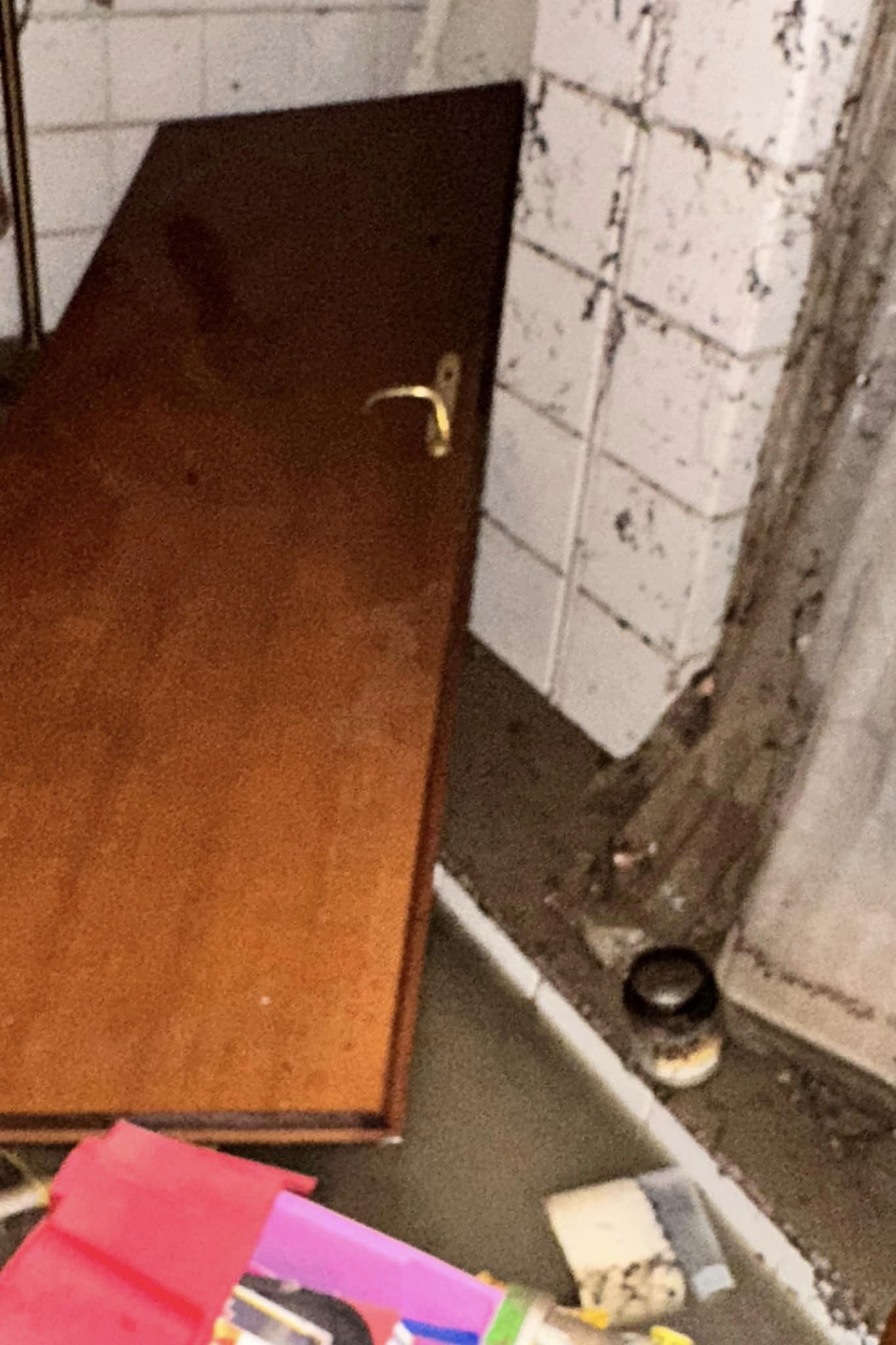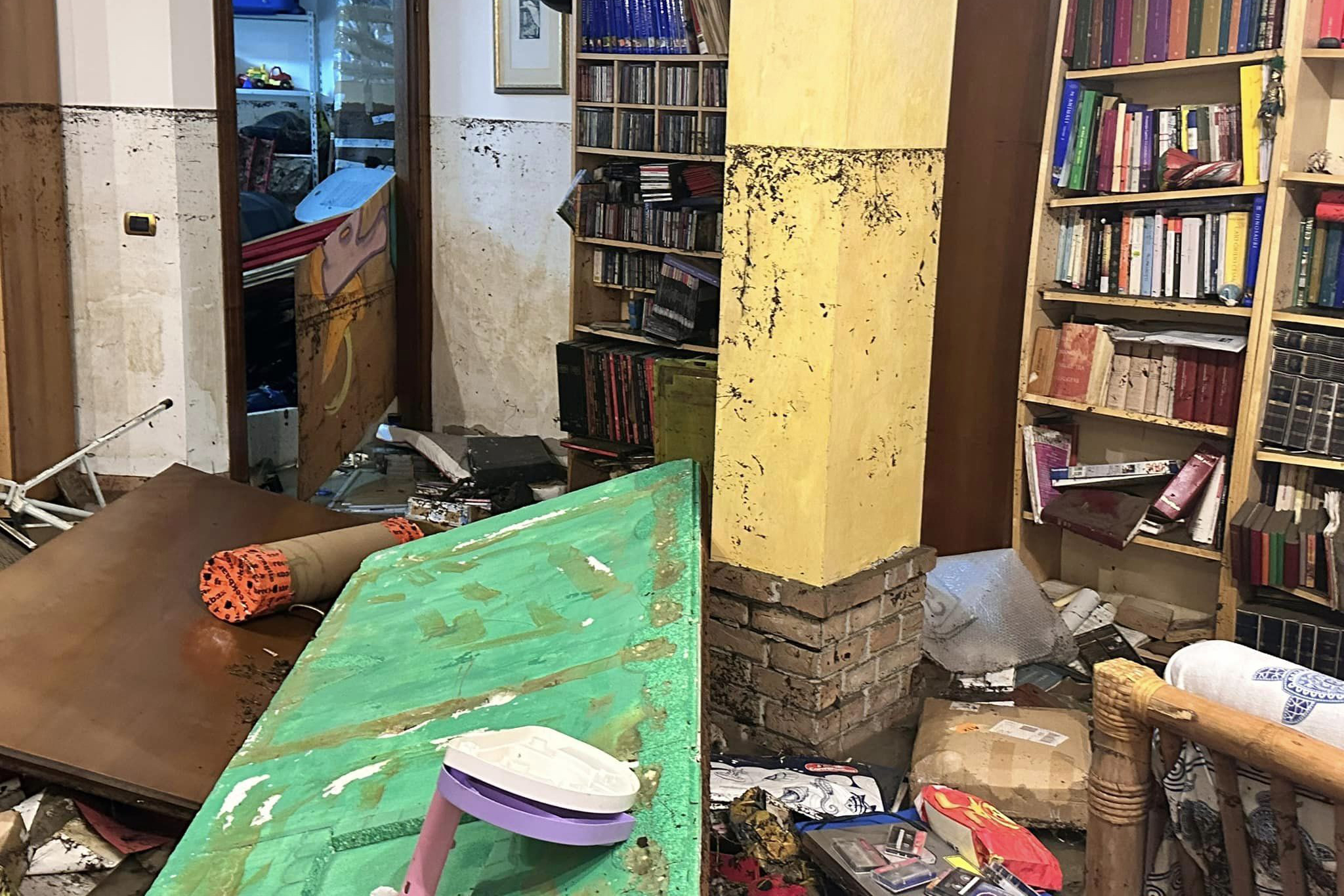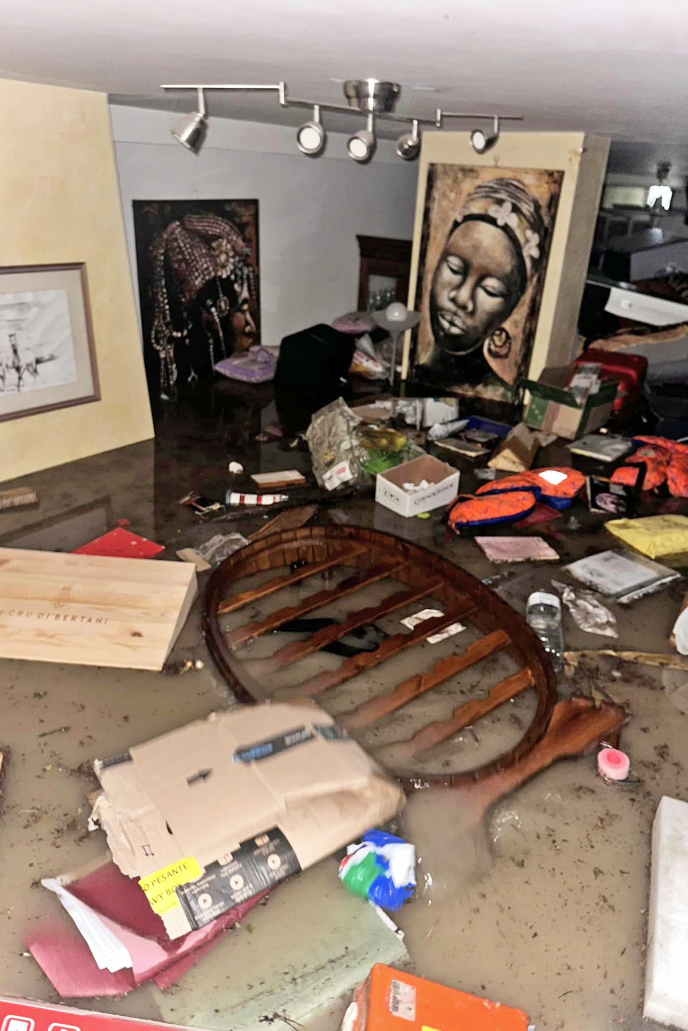 L’acqua mista al fango ha devastato un intero piano dell’abitazione. Mobili, oggetti e ricordi galleggiano a centimetri di altezza. Un disastro.