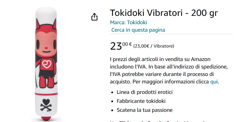 Oltre alle critiche per lo stile manga, però, vi sarebbe anche quella della scelta del partner per la produzione. Tokidoki, come alcuni hanno evidenziato, è un’azienda che non realizza solo questo tipo di oggettistica ma anche vibratori e altri toys “per la cura della persona”, come viene descritto su vari siti di vendita. Una partnership che ha ovviamente fatto storcere il naso a molti “fedelissimi”.