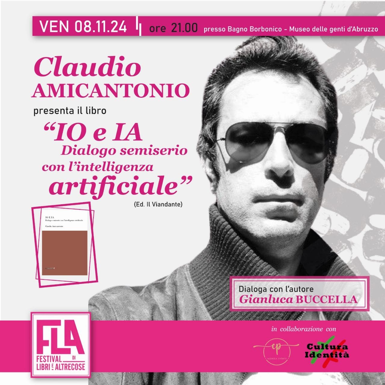 Alle 21, nel Bagno Borbonico, sarà presentato “Io e il dialogo semiserio con l’intelligenza artificiale” di Claudio Amicantonio, un libro che esplora con ironia e intelligenza il rapporto tra essere umano e tecnologia attraverso scambi di idee su argomenti filosofici cruciali come l’etica e l’ontologia. A dialogare con l’autore sarà Gianluca Buccella editorialista de L’Acerba.