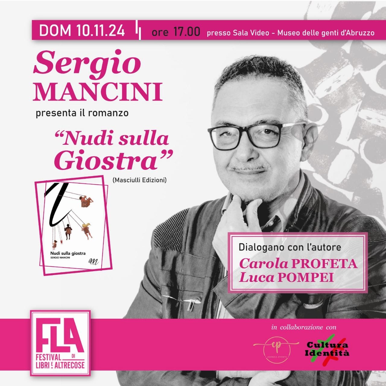 A concludere il ciclo di incontri, alle 17, sarà “Nudi sulla Giostra” di Sergio Mancini, un racconto di vita e di emozioni dove si incontrano amori e solitudini nell’era post-Covid che si terrà anch’esso nella Sala Video. Dialogheranno con l’autore il giornalista e scrittore Luca Pompei e Carola Profeta.