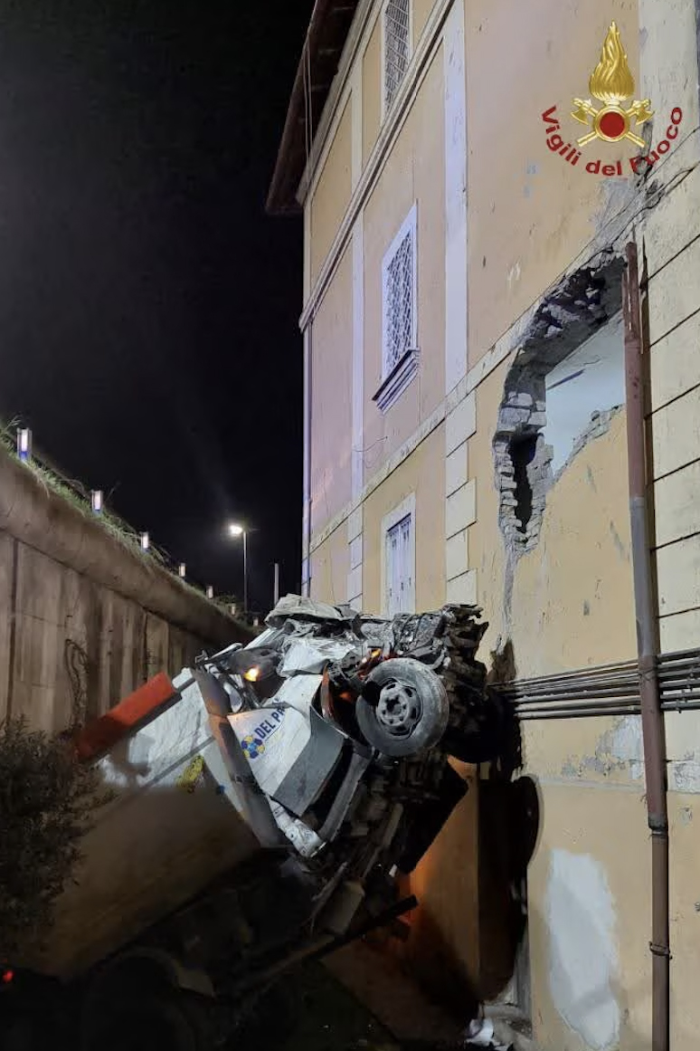 Poco prima delle 5 di oggi, giovedì 7 novembre, per cause in corso di accertamento un mezzo Ama ha perso il controllo ed è precipitato in un cortile di via Vitorchiano.