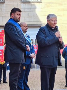 Il colorato corteo ha attraversato via Marconi e via del Corso, arrivando poi, con i labari delle varie sezioni, a Palazzo Gentili, accompagnato dalle note festose della banda musicale.
