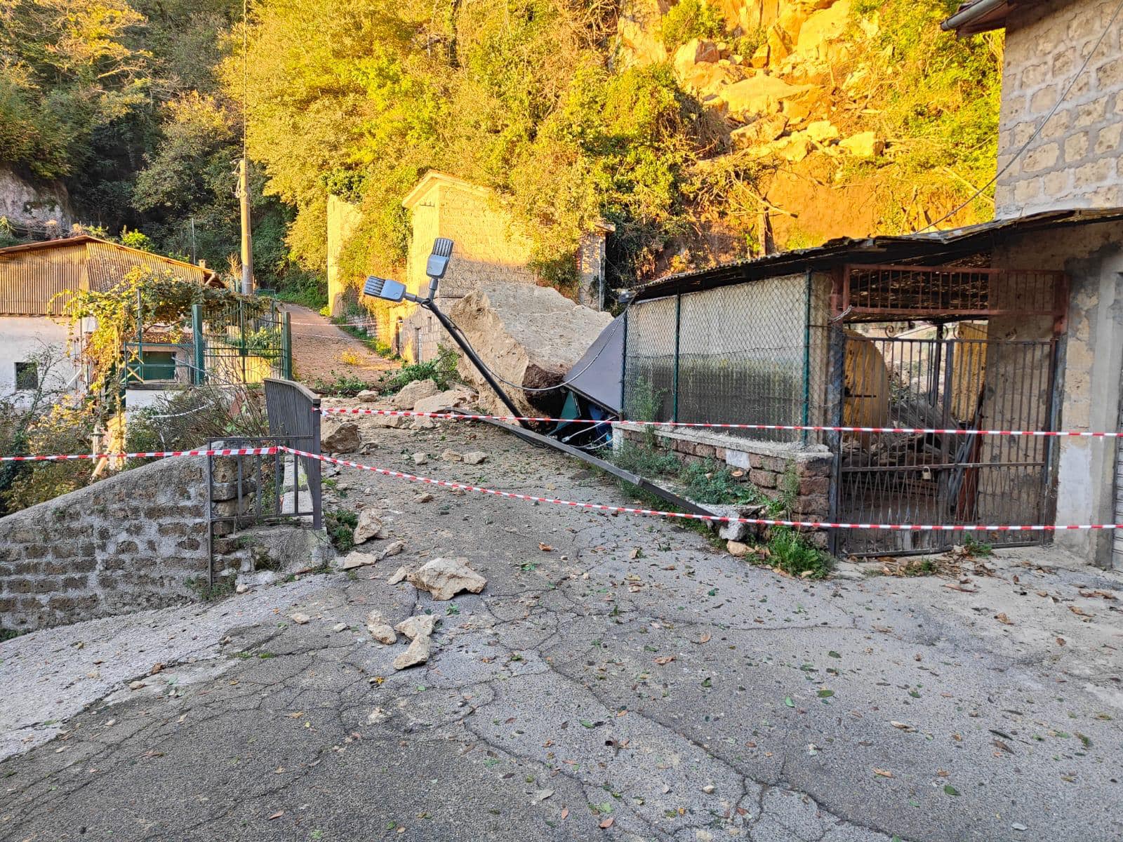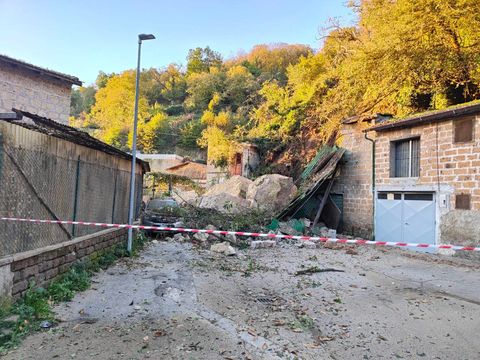 Caprarola – Frana in via Rosolino Pilo, massi enormi sulla passeggiata (FOTO)
