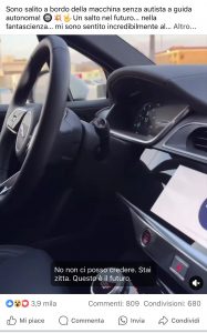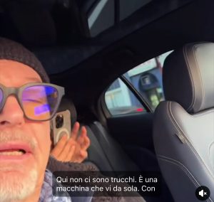 E poi su Instagram: “Io, la Marina e alla guida.. il mio amico immaginario. Non c’è trucco non c’è inganno… è la macchina che guida da sola… senza autista. Si chiama direttamente dall’app sul cellulare”.