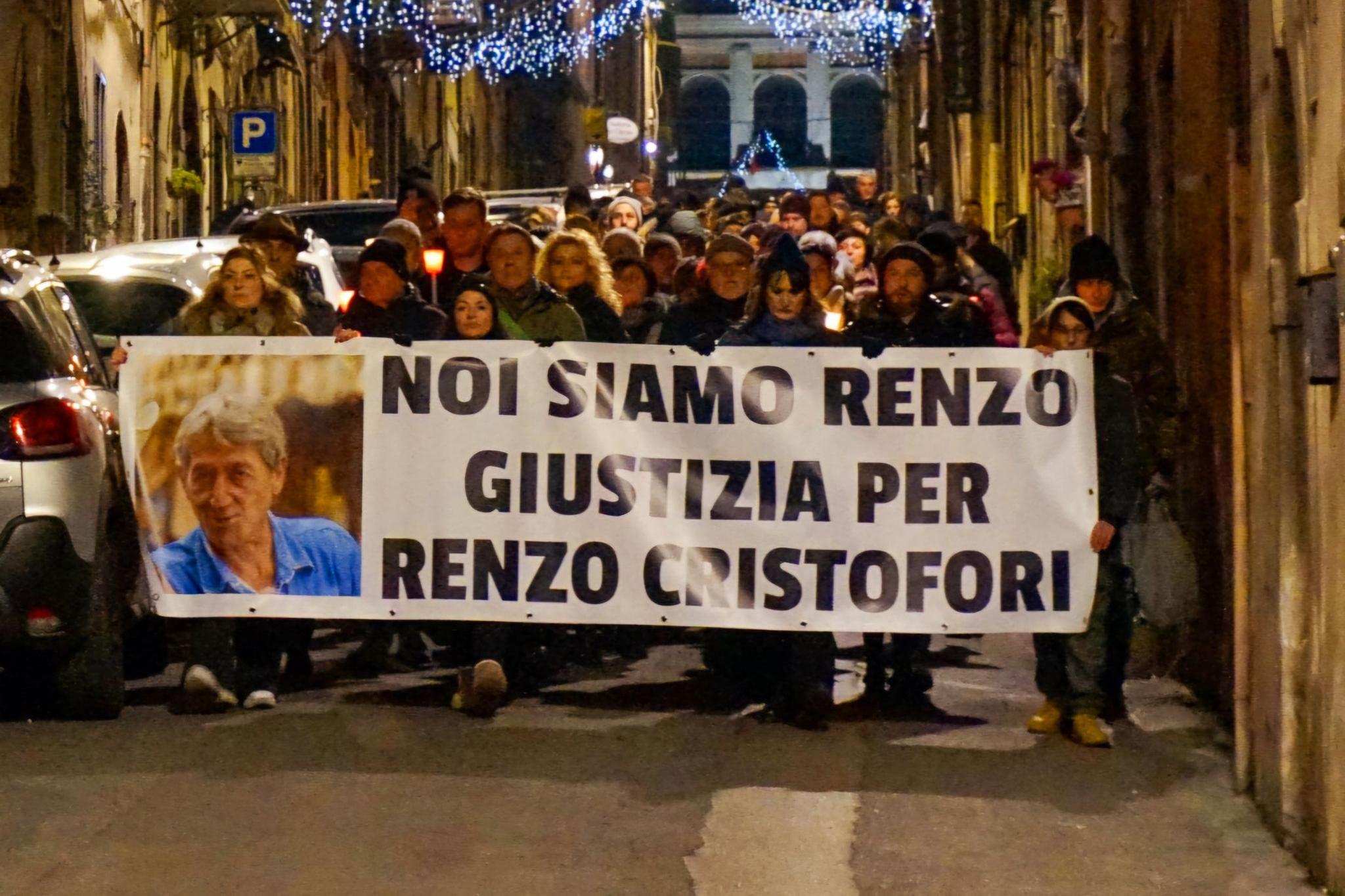 “Noi siamo Renzo, giustizia per Renzo Cristofori” recitava lo striscione con cui si chiedeva giustizia per il feroce omicidio dell’ex netturbino.