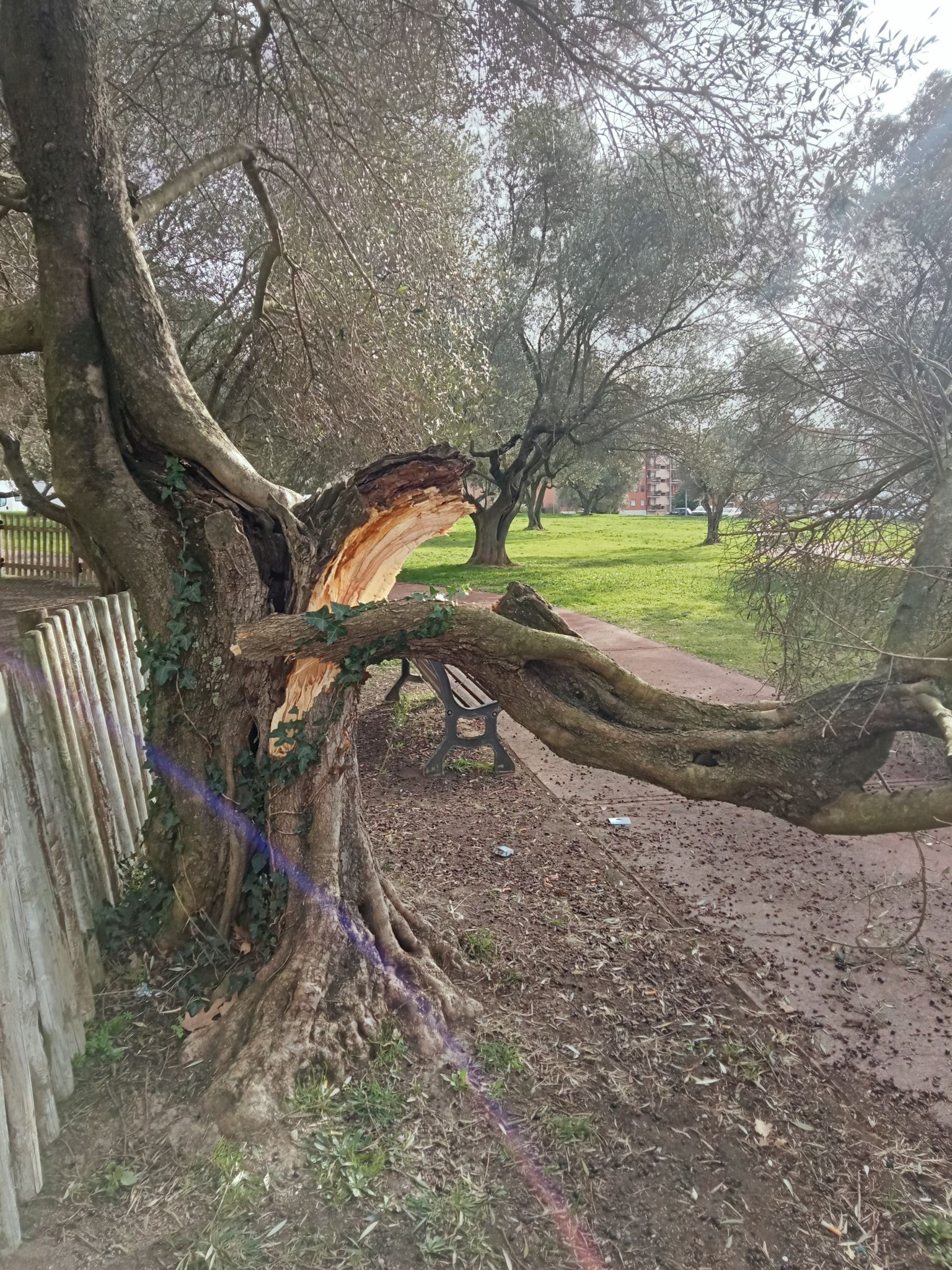 “Grazie a Dio non c’erano bambini o persone – si legge nel post -. Capisco il vento ma sono ulivi mai potati, enormi e non curati”.