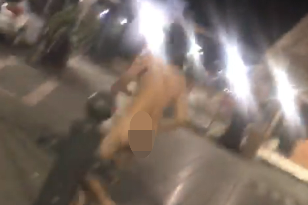 La sequenza mostra l’uomo che, di notte, circola completamente senza vestiti correndo per il centro.