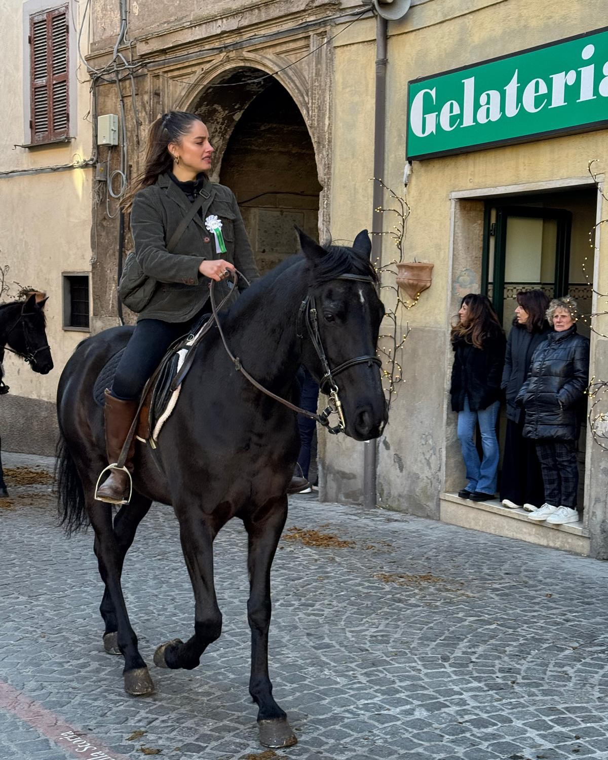 Proprio sul suo profilo le foto della passeggiata a cavallo nel centro di Sutri al commento di “Evviva Sant’Antonio“.