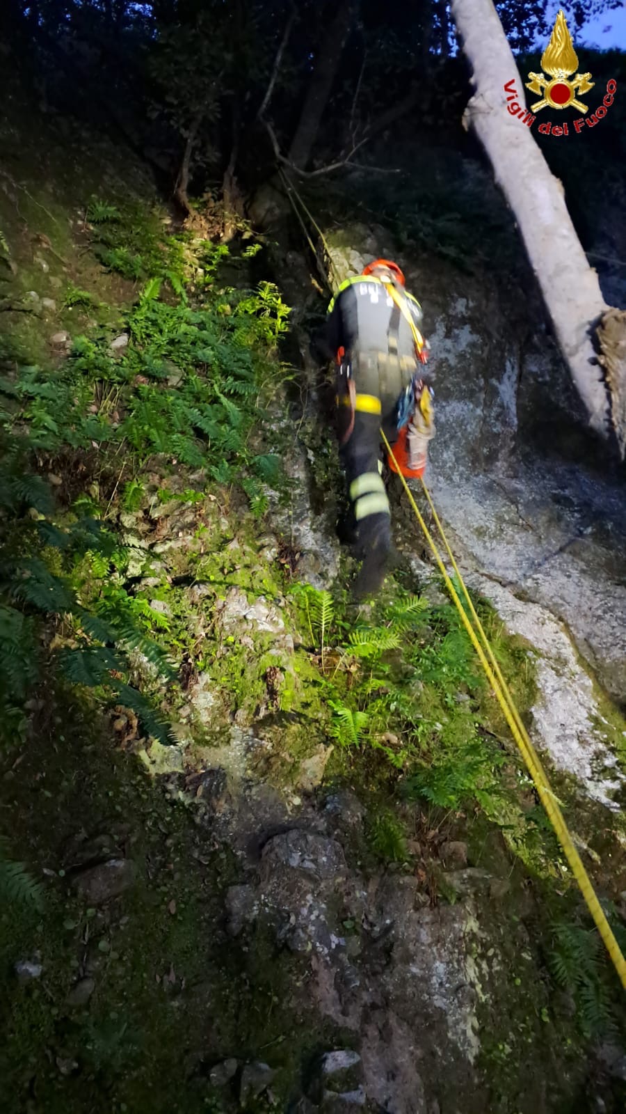 Coadiuvati dai Saf, Speleo alpino fluviale, specialisti dei recuperi su corda, i Vigili del fuoco hanno raggiunto il cane e lo hanno riportato con manovre specifiche.