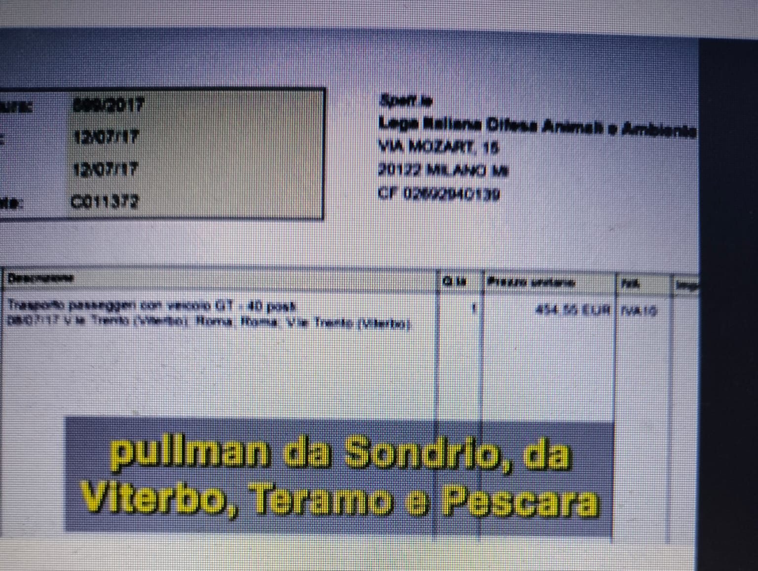 Sarebbero infatti oltre 600mila euro i soldi spesi in “attività generali” dalla onlus, fatture per affittare spazi per eventi, ma anche pranzi, pernottamenti di lusso, auto blu, casse di vino e pullman partiti da diversi parti d’Italia, tra cui Viterbo, alla volta di Roma, per sostenere l’onorevole Vittoria Brambilla e aiutarla ad essere eletta in Parlamento. Era l’8 luglio 2017 e il gruppo viterbese, come si vede nella foto di copertina, non ha fatto mancare il suo sostegno alla giusta causa della difesa degli animali.
