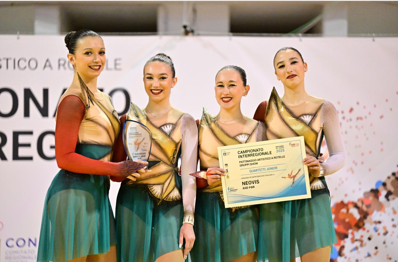 BASSANO DEL GRAPPA – Si è aperta ufficialmente la stagione agonistica 2025 di pattinaggio artistico a rotelle. Infatti nello scorso fine settimana, nello splendido impianto di Bassano del Grappa, si sono svolti i campionati Interregionali Fisr Gruppi spettacolo 2025. Per i colori della Star roller club è scesa in pista Nicole Torromacco che da quest’anno fa parte del quartetto Junior Neovis insieme a tre atlete del Pattinaggio artistico a rotelle. Le ragazze, che pattinano insieme da appena tre mesi e sono allenate dai pluri-irridati Alessandro Spigai e Daniele Tessaro, hanno sfoderato un’ottima prestazione.
