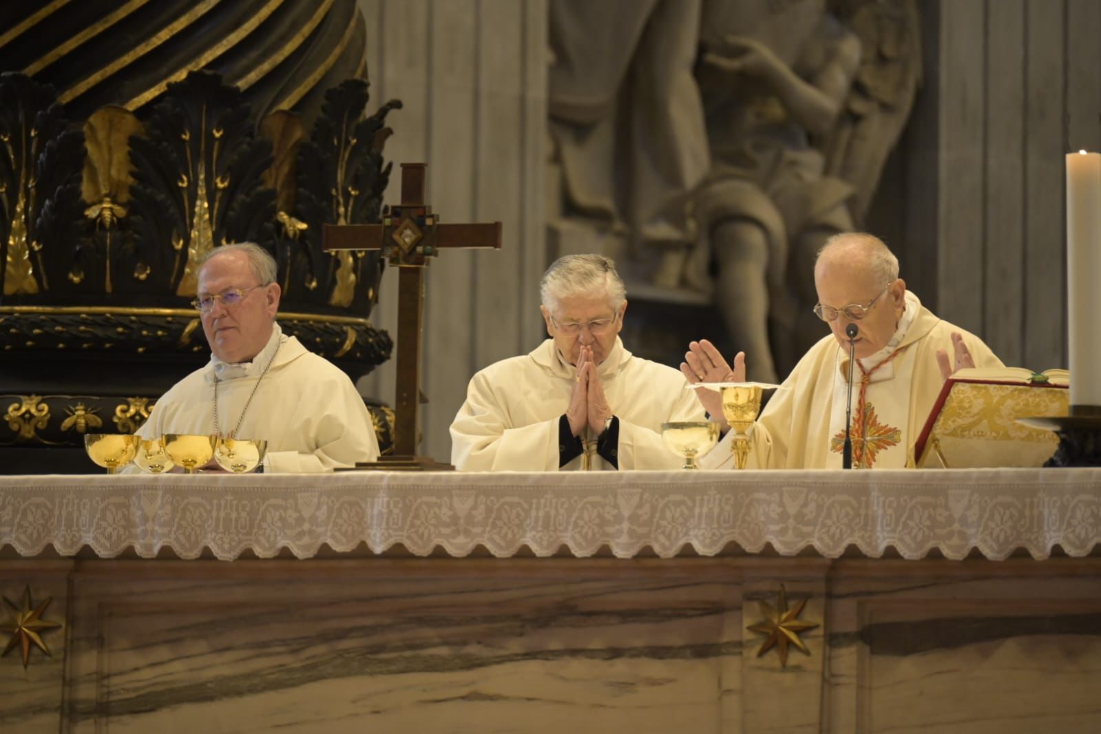 Durante la celebrazione non è mancata la preghiera per il Santo Padre Francesco da ieri ricoverato all’ospedale Gemelli di Roma.