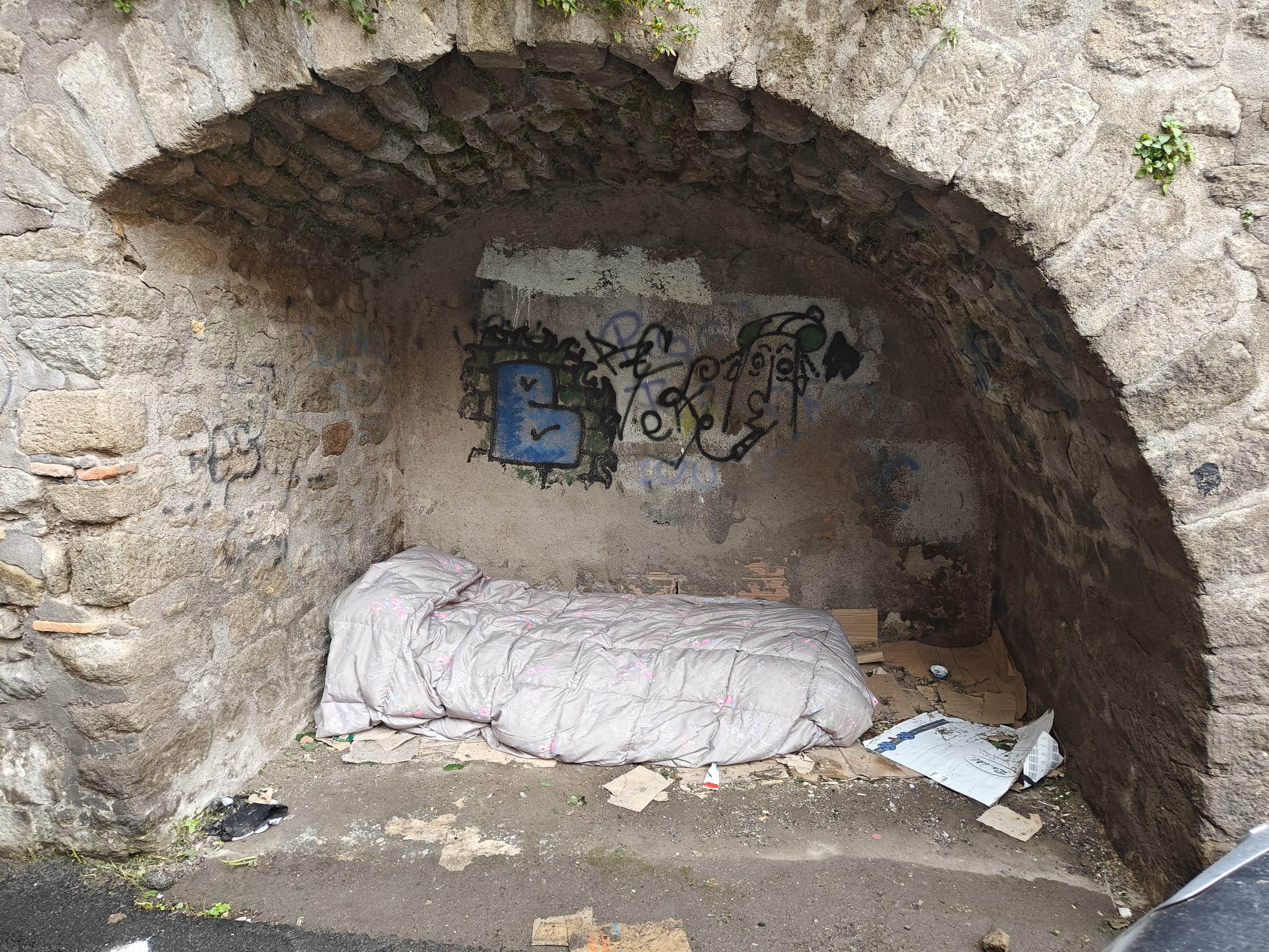 VITERBO – Lettini arrangiati ai piedi di un palazzo diroccato, immondizia, lattine, sporcizia ed erba incolta a due passi dalla sede distaccata del Liceo Buratti che si trova appena dentro Porta San Leonardo, una delle zone più degradate dell’intera area delle Fortezze.