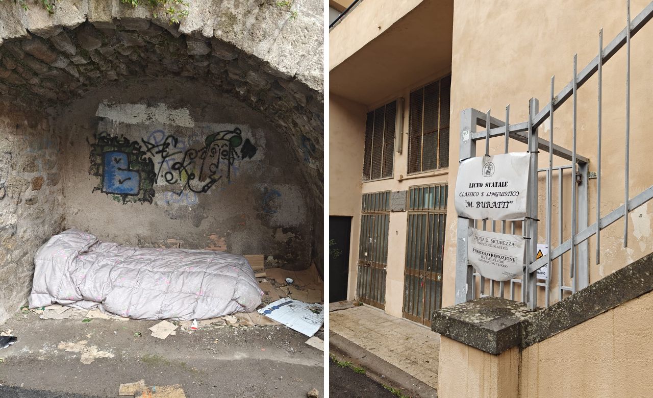 Viene da chiedersi “in che mondo viviamo?” e molte famiglie se lo sono già chiesto. Lo spettacolo che ogni mattina gli studenti affrontano è letteralmente impietoso, così come è impietoso come i poveri clochard siano costretti a vivere, all’ombra di un antico palazzo che sembrerebbe sul punto di crollargli addosso da un momento all’altro.