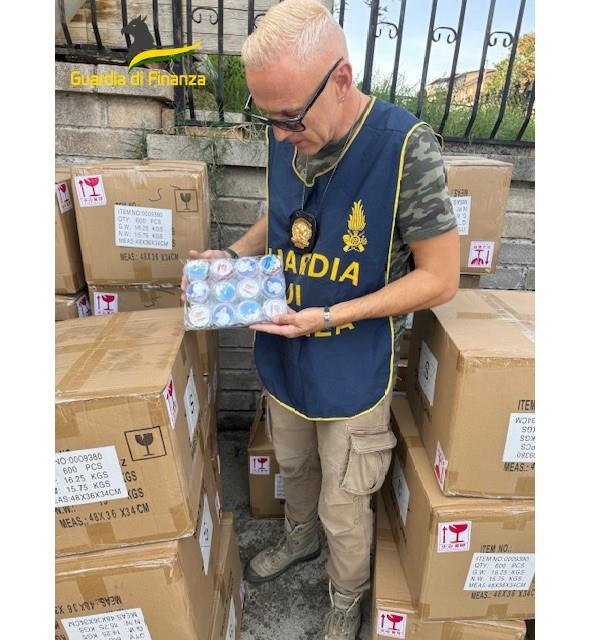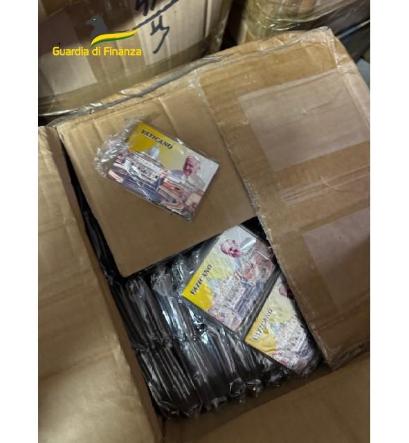 Il successivo controllo del deposito, presso il quale avvenivano le operazioni di carico della merce illecita, ha portato al rinvenimento di numerosi altri articoli contraffatti, in prevalenza gadget e souvenir recanti immagini Sacre Vaticane per un totale di 130.168 articoli, successivamente posti sotto sequestro.