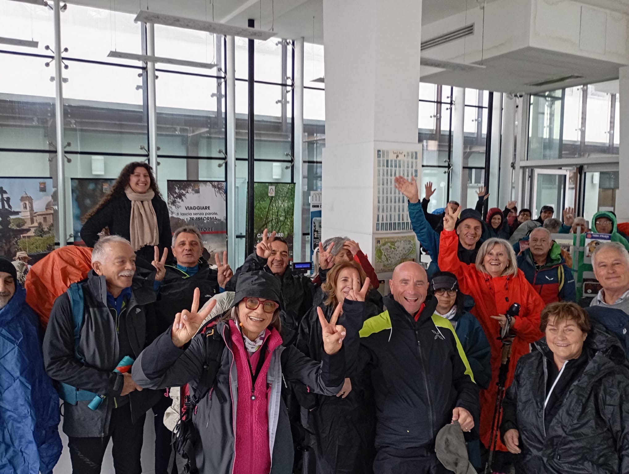 La consigliera Croci ha poi accompagnato i pellegrini all’Ufficio Turistico comunale in piazza Martiri d’Ungheria per il timbro sulla loro credenziale. Tre i timbri per la precisione, tra cui quello speciale dedicato all’anno giubilare. “È sempre bello accogliere pellegrini in cammino – spiega la consigliera delegata Croci -, ma mi fa ulteriormente piacere accogliere pellegrini giunti nella nostra città appositamente per vedere e rendere omaggio alla ferula papale, come in questo caso. Se ne parla e si sta facendo conoscere anche al di fuori dei nostri confini regionali il cammino silenzioso della ferula papale. Un simbolo che attraverso le benedizioni impartite dai sacerdoti dei luoghi attraversati si sta caricando sempre di più del dolore e delle speranze delle tante persone che partecipano ai cammini e delle altre che ci accolgono nei vari territori lungo il percorso.