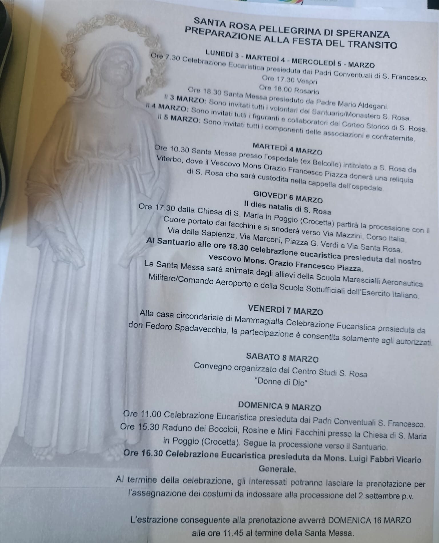 Partenza alle 17.30 dalla chiesa della Crocetta, Via Mazzini, via del Corso e rientro al Santuario di Santa Rosa.