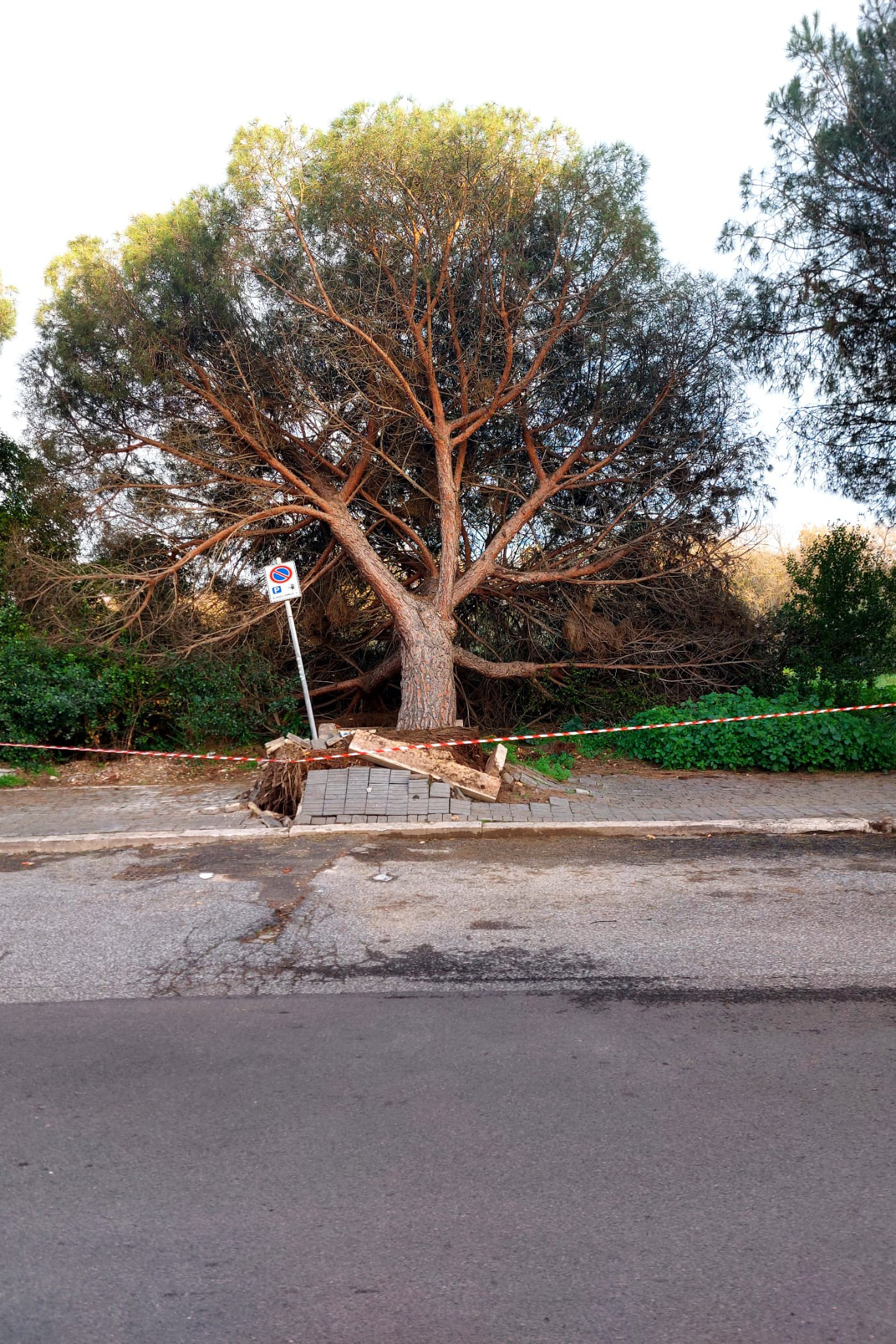 Nel pomeriggio di lunedì 10 marzo, per cause in corso di accertamento, un grosso pino è franato rovinosamente a terra in via dei Delfini.