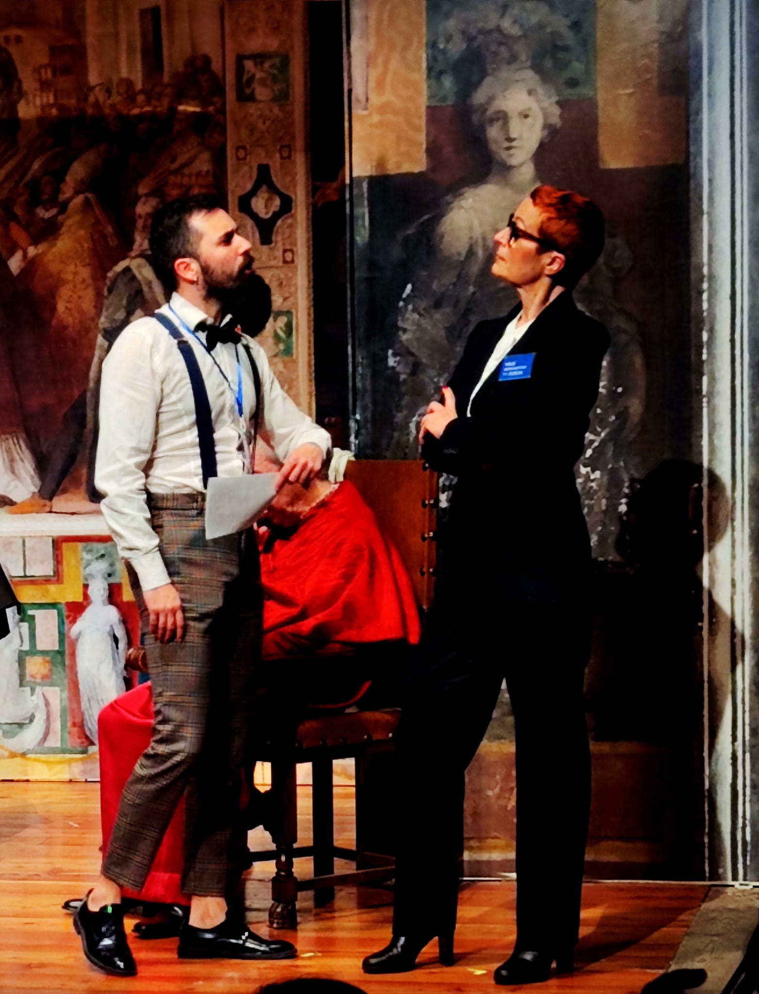 Una rappresentazione che, com’è nello stile della compagnia, coniuga brillantemente le risate alle considerazioni, portando sul palco opere basate su solide documentazioni storiche che, con la “scusa” di divertire lo spettatore, lo conducono in realtà a riflettere, ad approfondire, a conoscere….