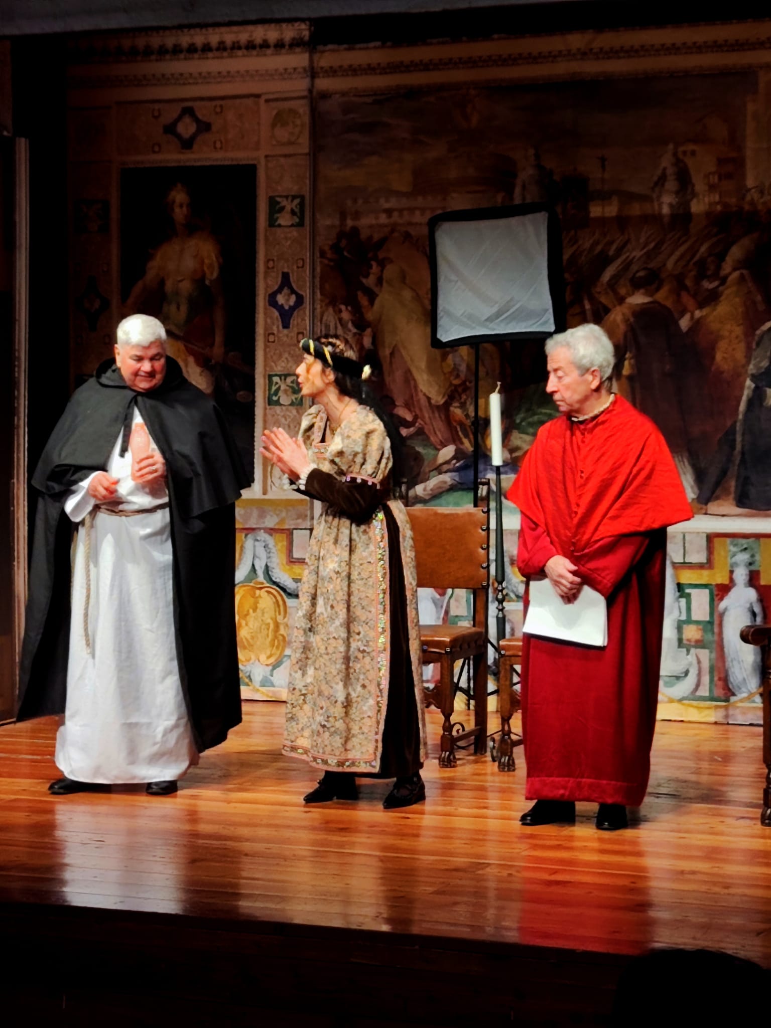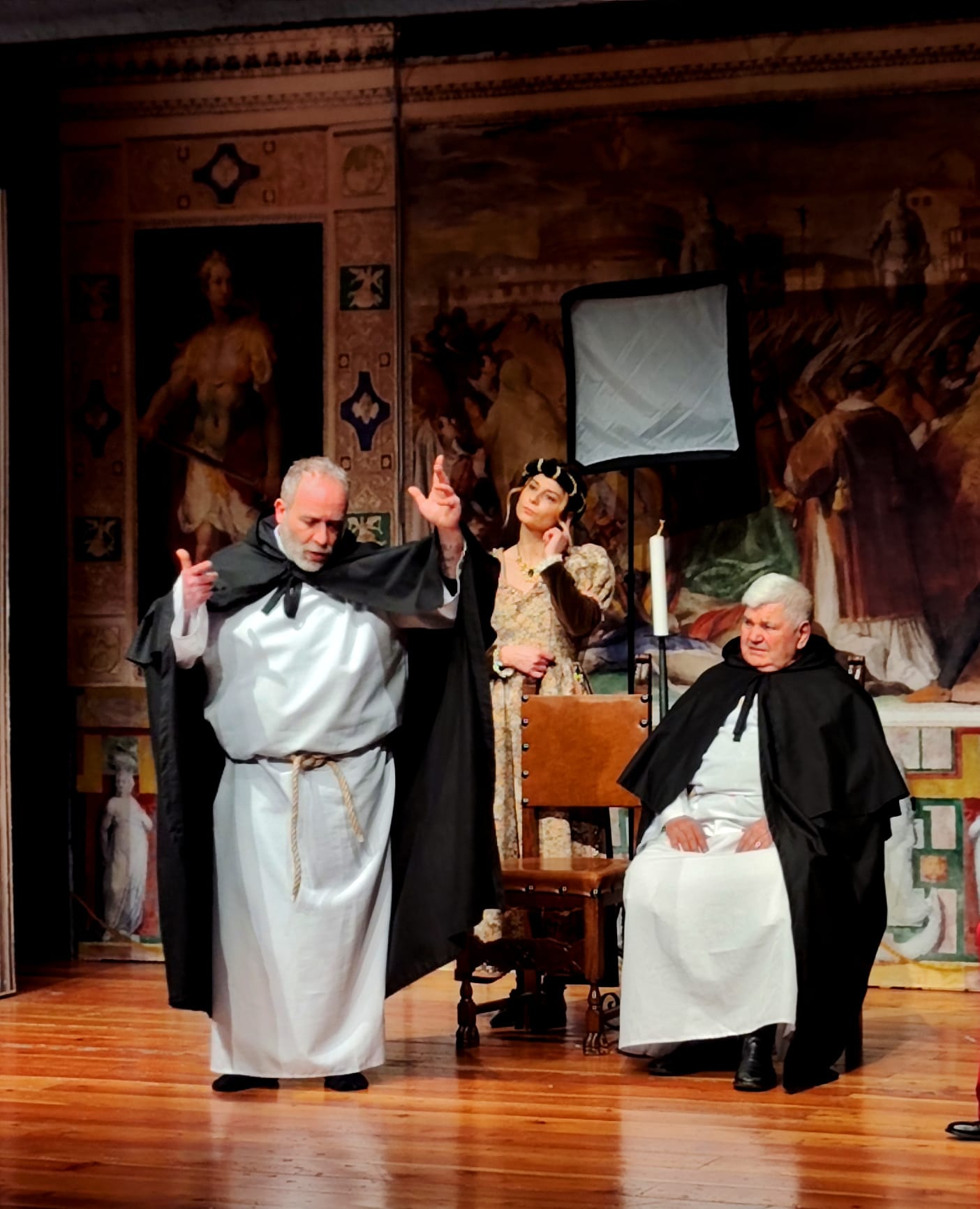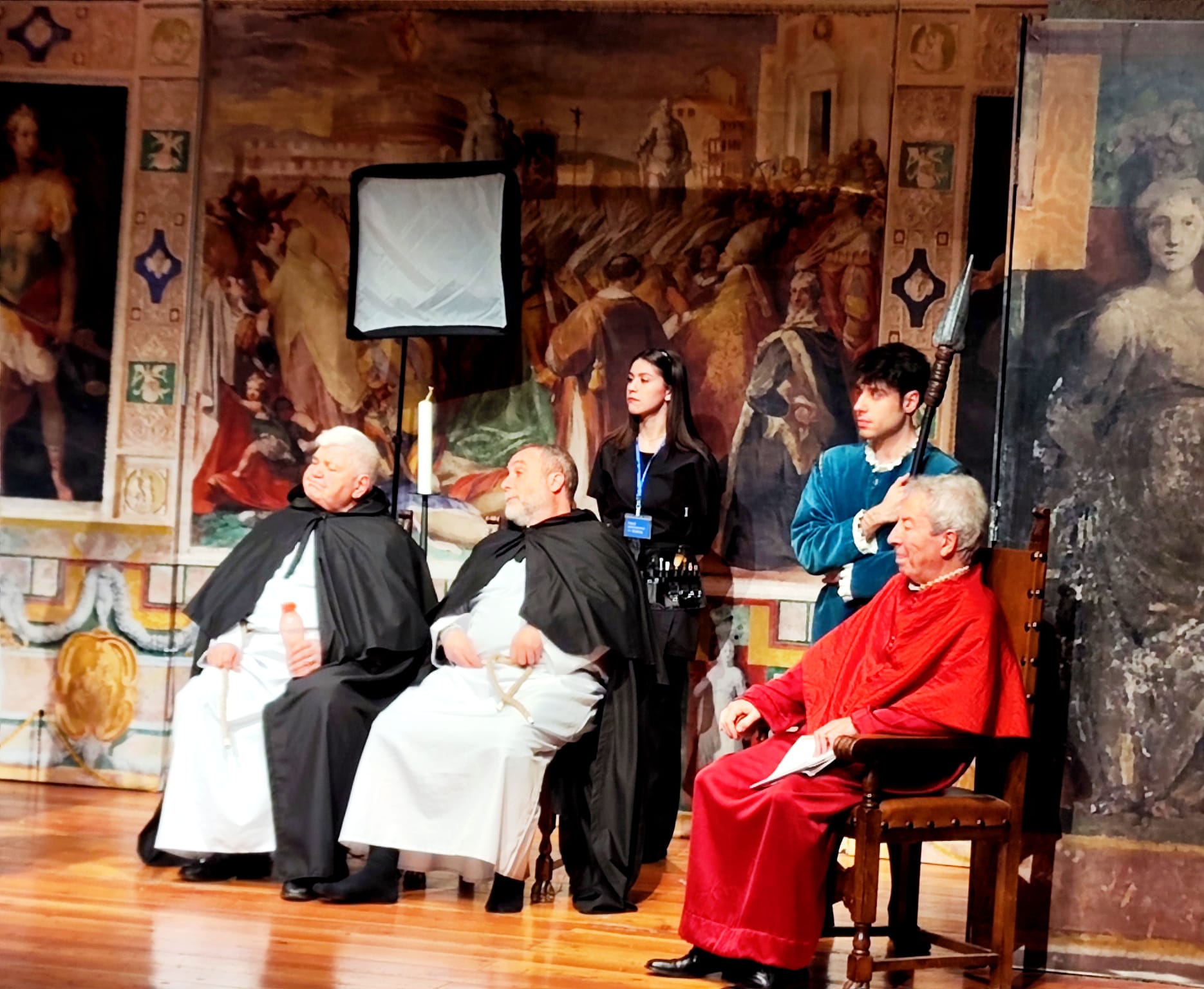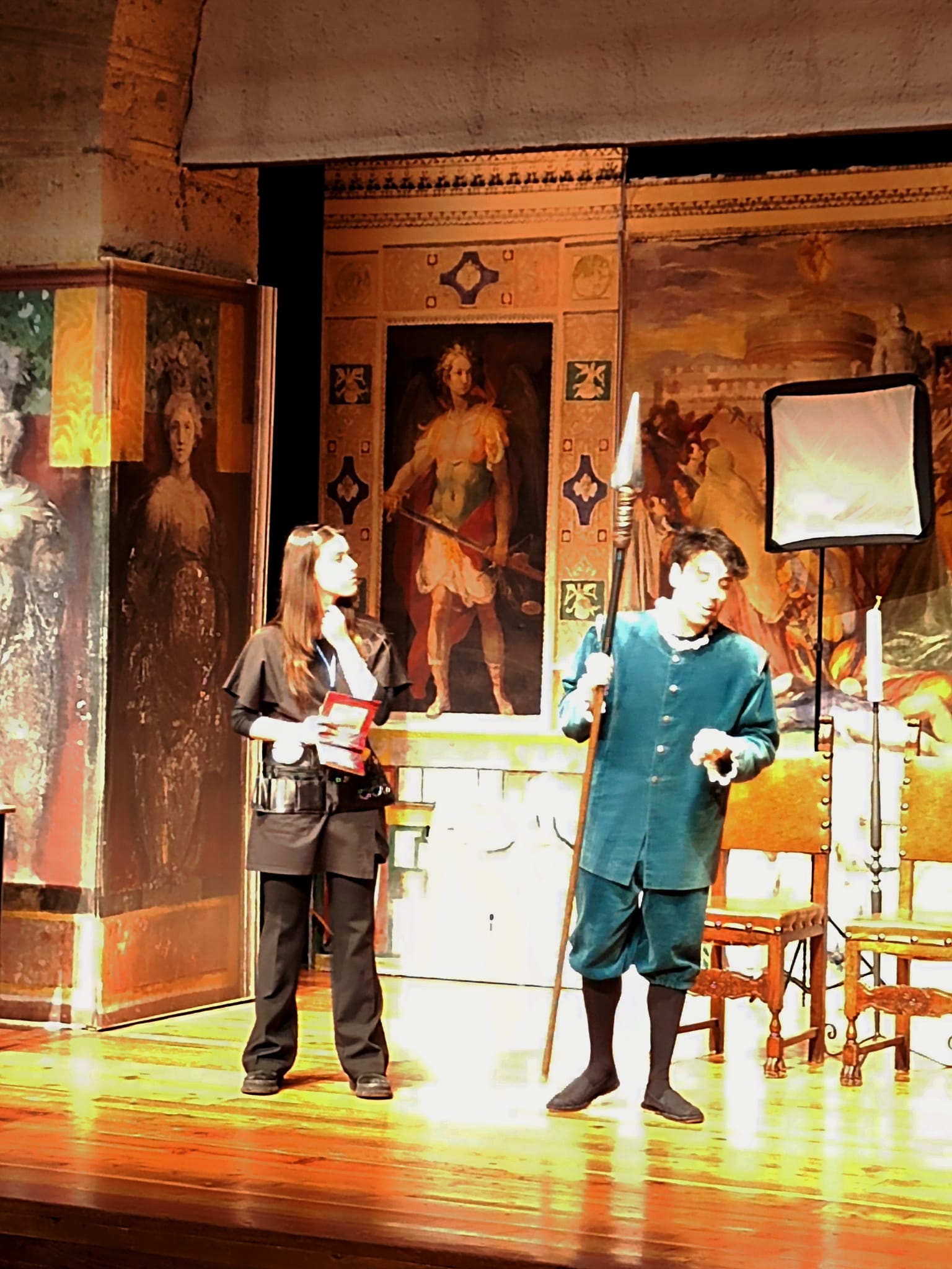 Una rappresentazione che, com’è nello stile della compagnia, coniuga brillantemente le risate alle considerazioni, portando sul palco opere basate su solide documentazioni storiche che, con la “scusa” di divertire lo spettatore, lo conducono in realtà a riflettere, ad approfondire, a conoscere….