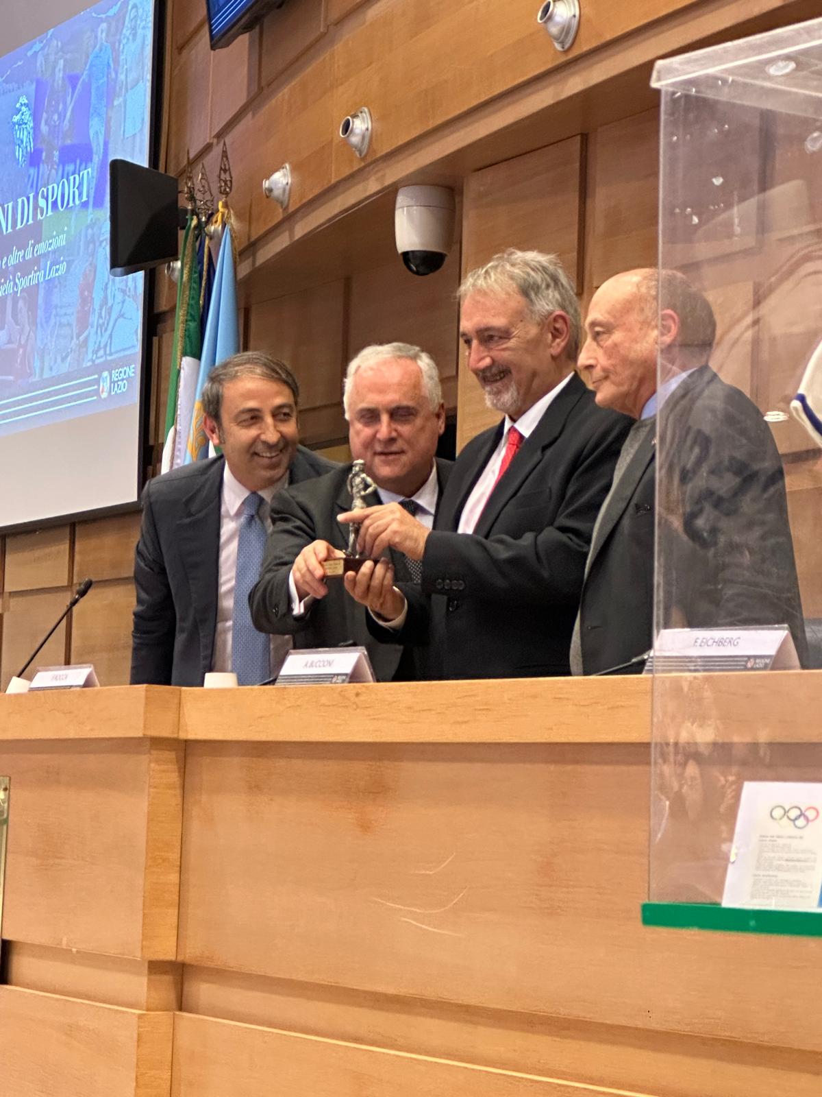 Un riconoscimento speciale consegnato al presidente Francesco Rocca. Lotito, se dipende da Lazio sicuro stadio Flaminio verra’ realizzato